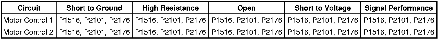 * DTCs P1516, P2101, and P2176 are Type A DTCs.