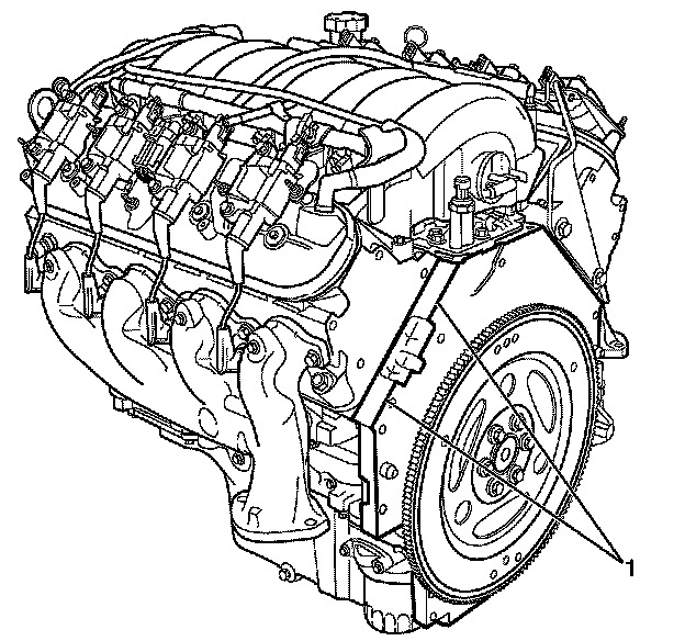The vehicle identification number (VIN) is located on the left side rear of the engine block (1) and is typically a 9 digit number stamped or laser-etched onto the engine at the vehicle assembly plant.