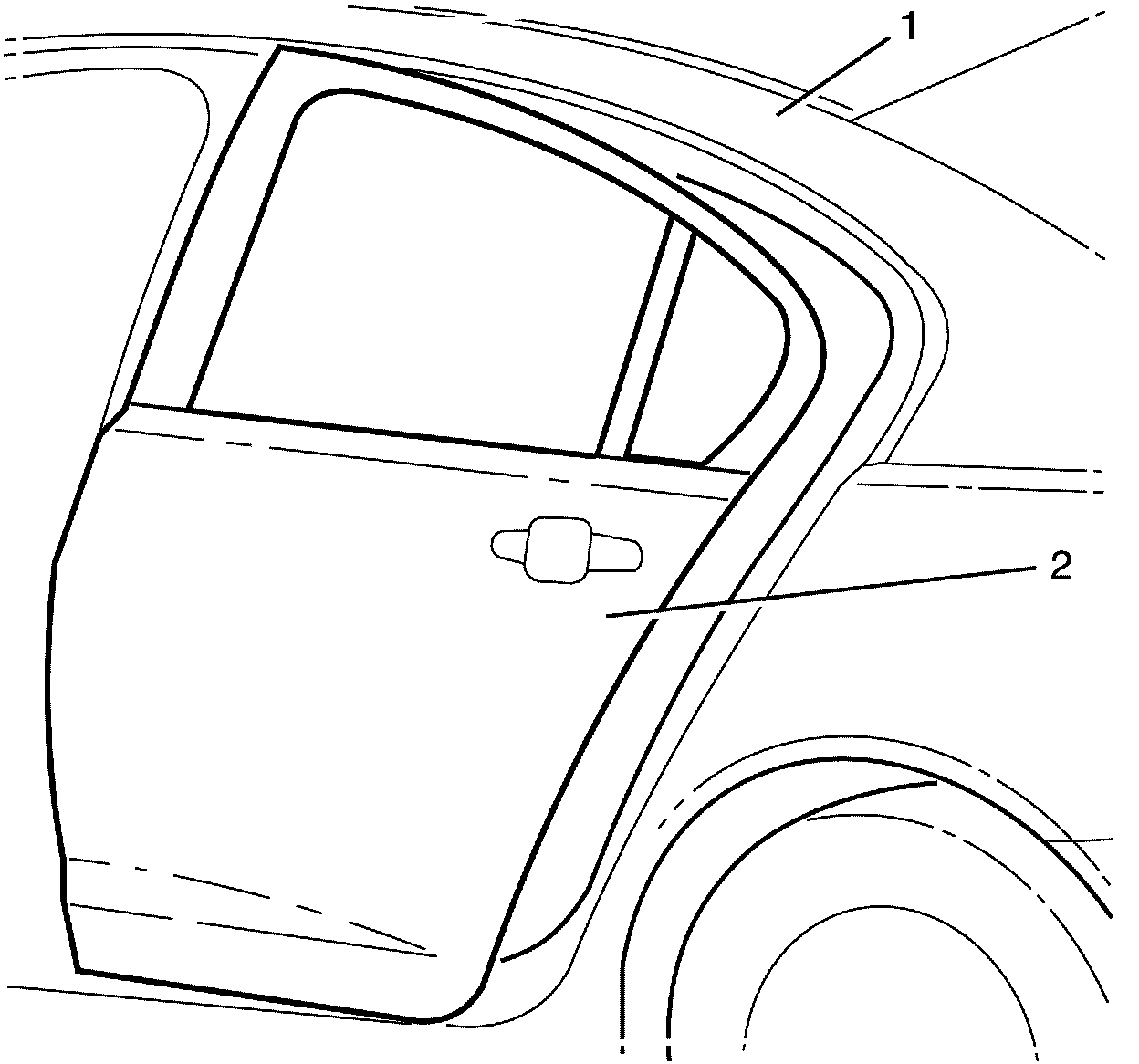 6. Remove the window outer belt sealing strip. Refer to Rear Side Door Window Outer Sealing Strip Replacement (Rear Side Door Window Outer Sealing Strip Replacement).