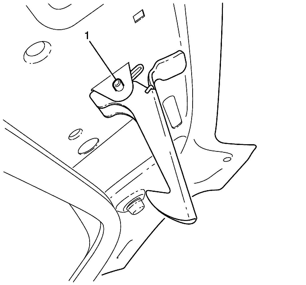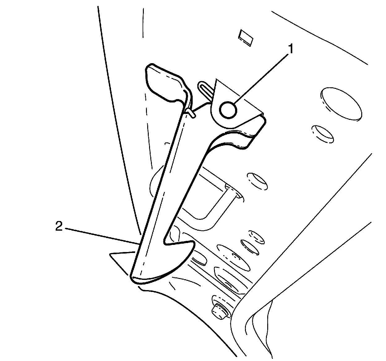 Note: The secondary hood latch retaining pin (1) is a single use part only. It must be discarded after removal.