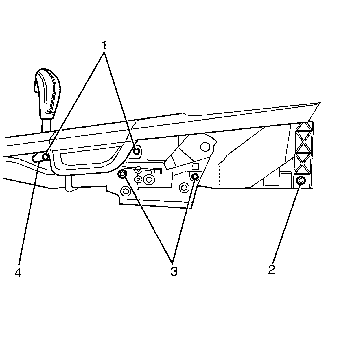 1. Remove the side trim plate - Console. Refer to Console Trim Plate Replacement (Service and Repair).
