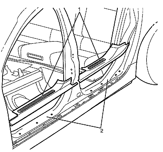 Note: When removing the sill name plates (1), make sure the retaining clips are retained in the sill name plates (1).