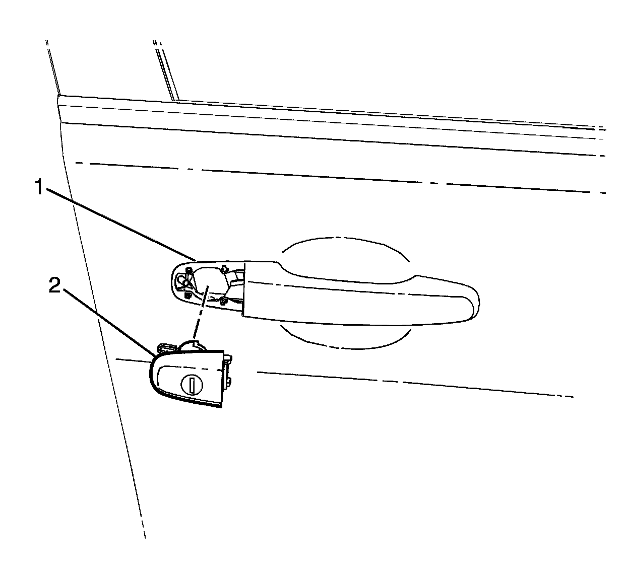 5. Remove the lock cylinder (2) from the outside door handle (1).