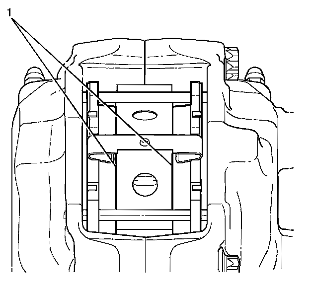* Inspect the thickness of the brake pad friction surfaces (1).