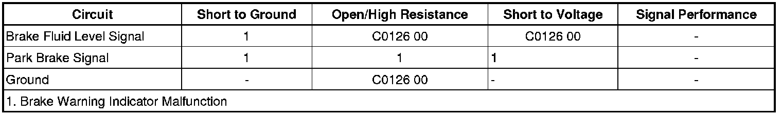 The instrument panel cluster (IPC) sees the brake fluid level switch input opens and illuminates the Red Brake Warning indicator. The body control module (BCM) sees the park brake switch input grounded, it sends a serial data message to the IPC requesting illumination of the Red Brake Warning indicator.