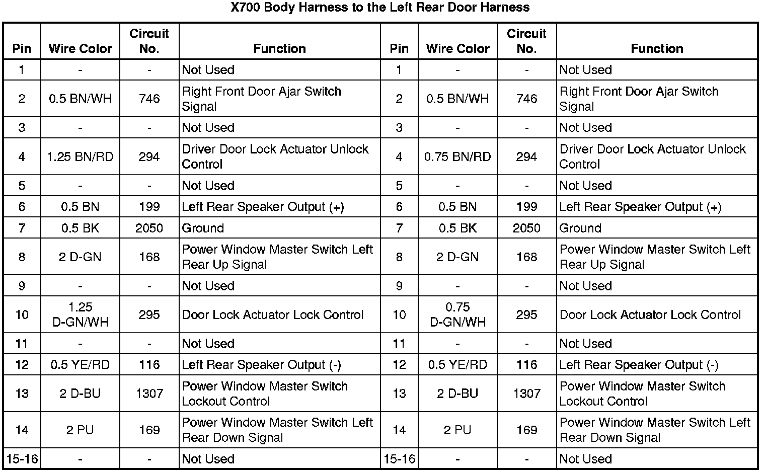 X700 Body Harness to the Left Rear Door Harness