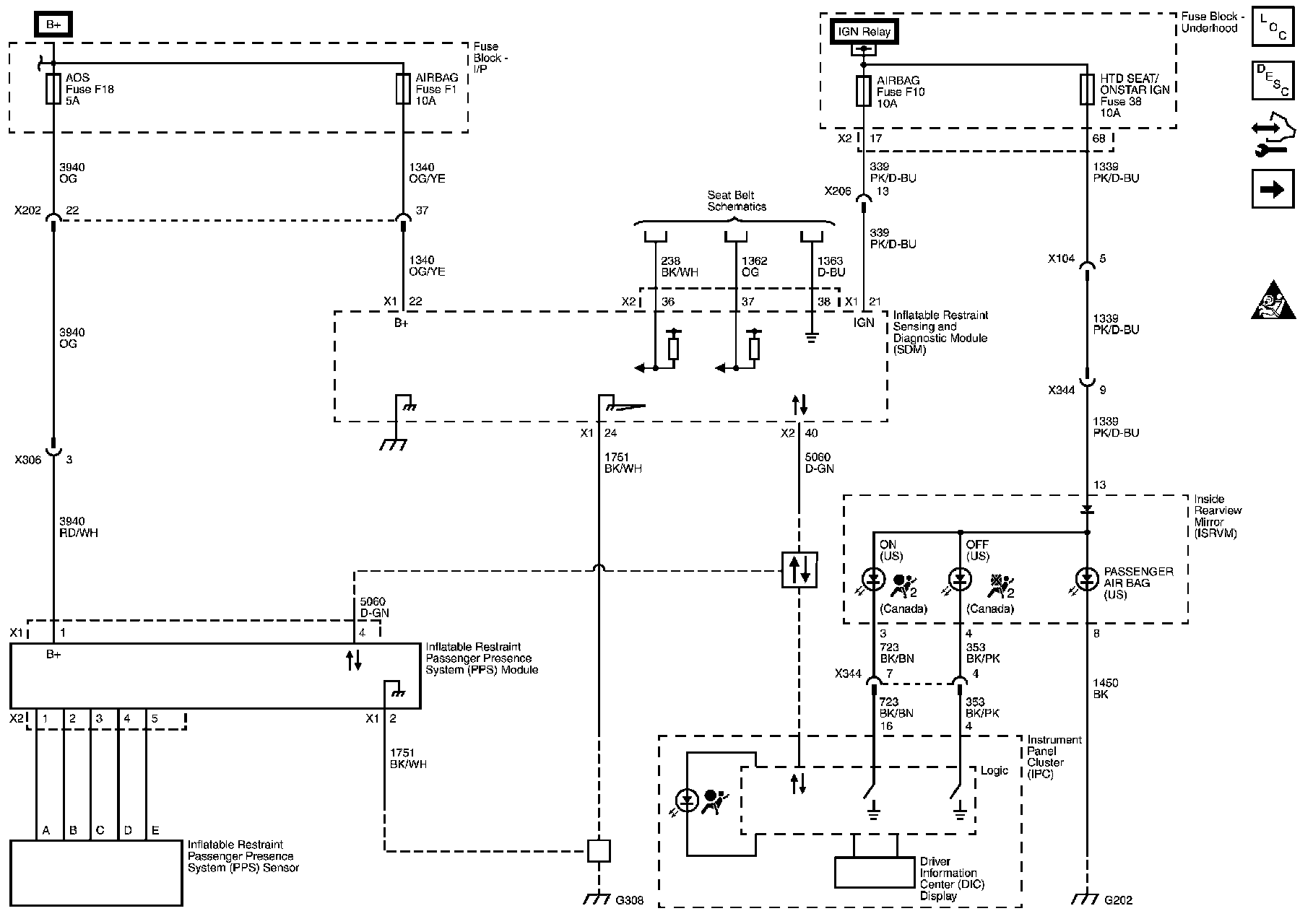 Module Power, Ground, Indicators, Rollover/Passenger Presence Sensors