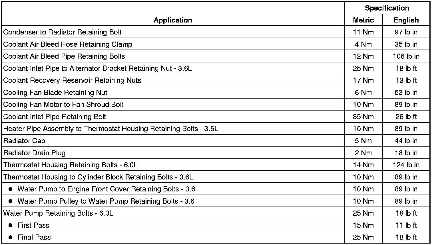 Cooling System: Specifications