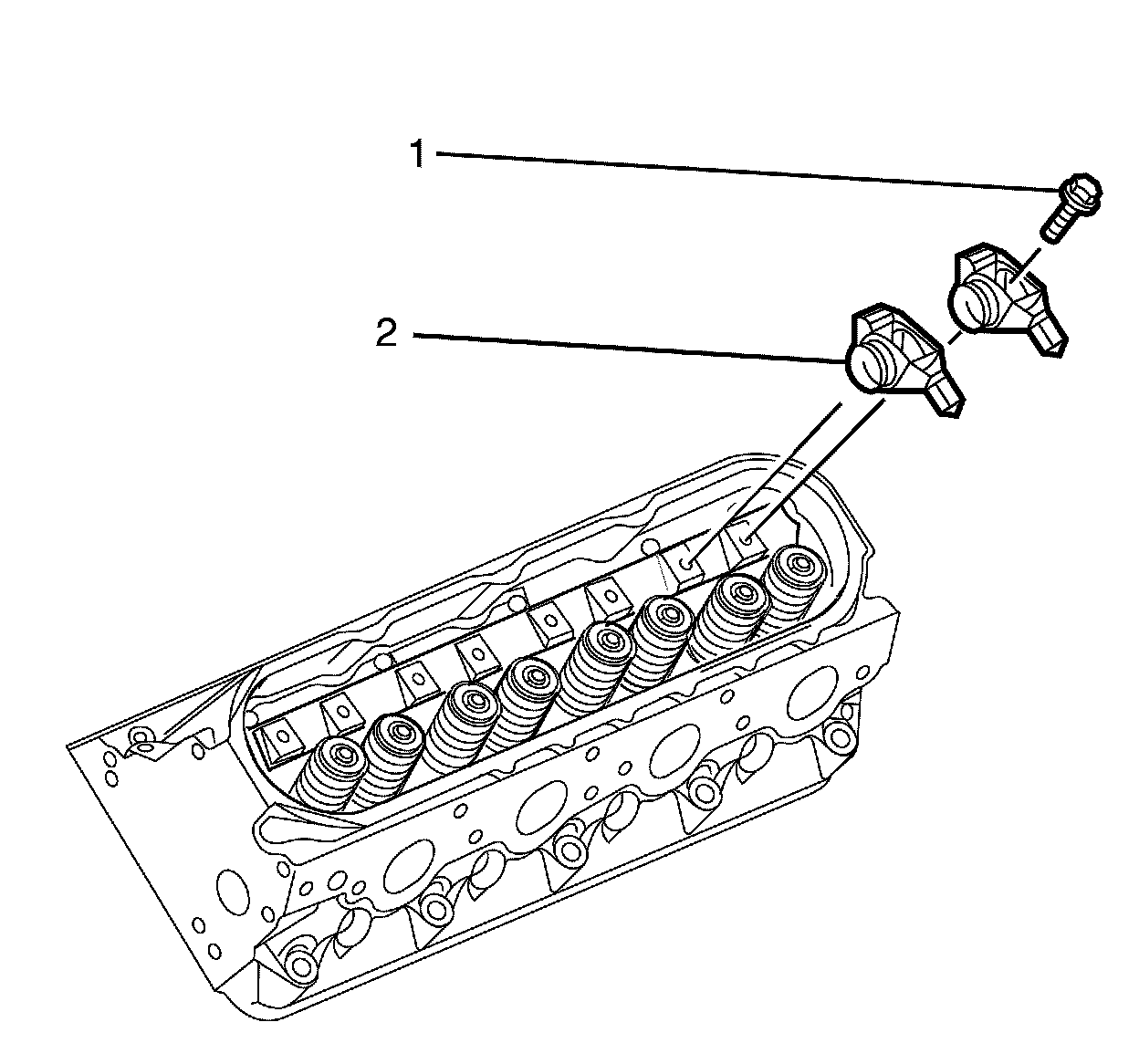 5. Lubricate the flange of the valve rocker arm bolts (1) with clean engine oil.