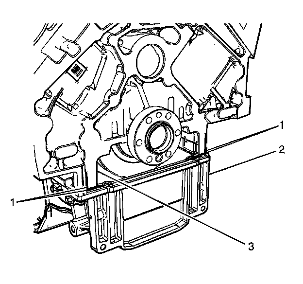 3. Remove the oil pan to rear oil seal housing bolts (1).
