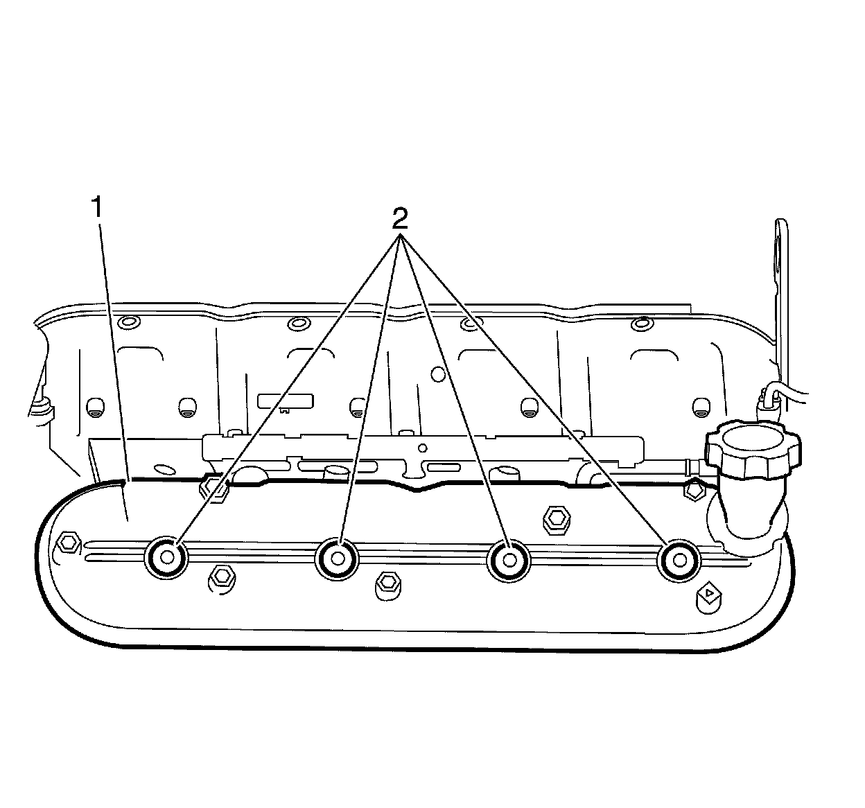 5. Remove and discard the valve rocker arm cover gasket, valve rocker arm cover grommets and valve rocker arm cover bolts if they are serviced with the grommet.