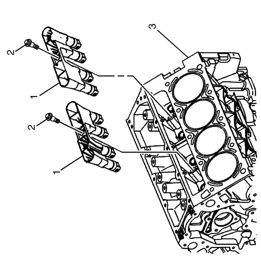 2. Remove the valve lifter guides (1) and valve lifters as an assembly from the cylinder block (3).