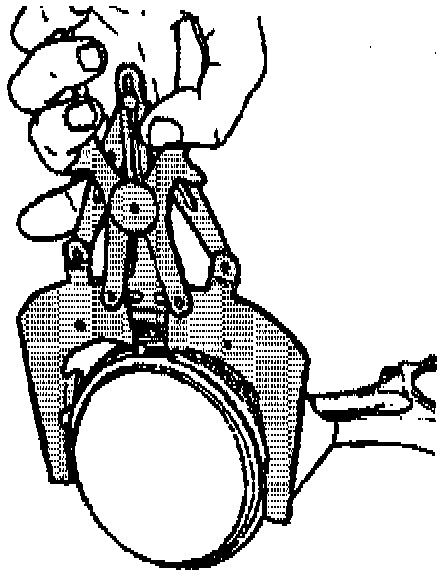 6. Insert the edge of the piston ring into the piston ring groove.