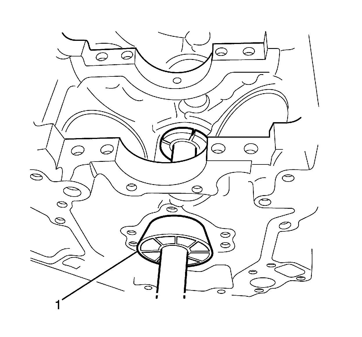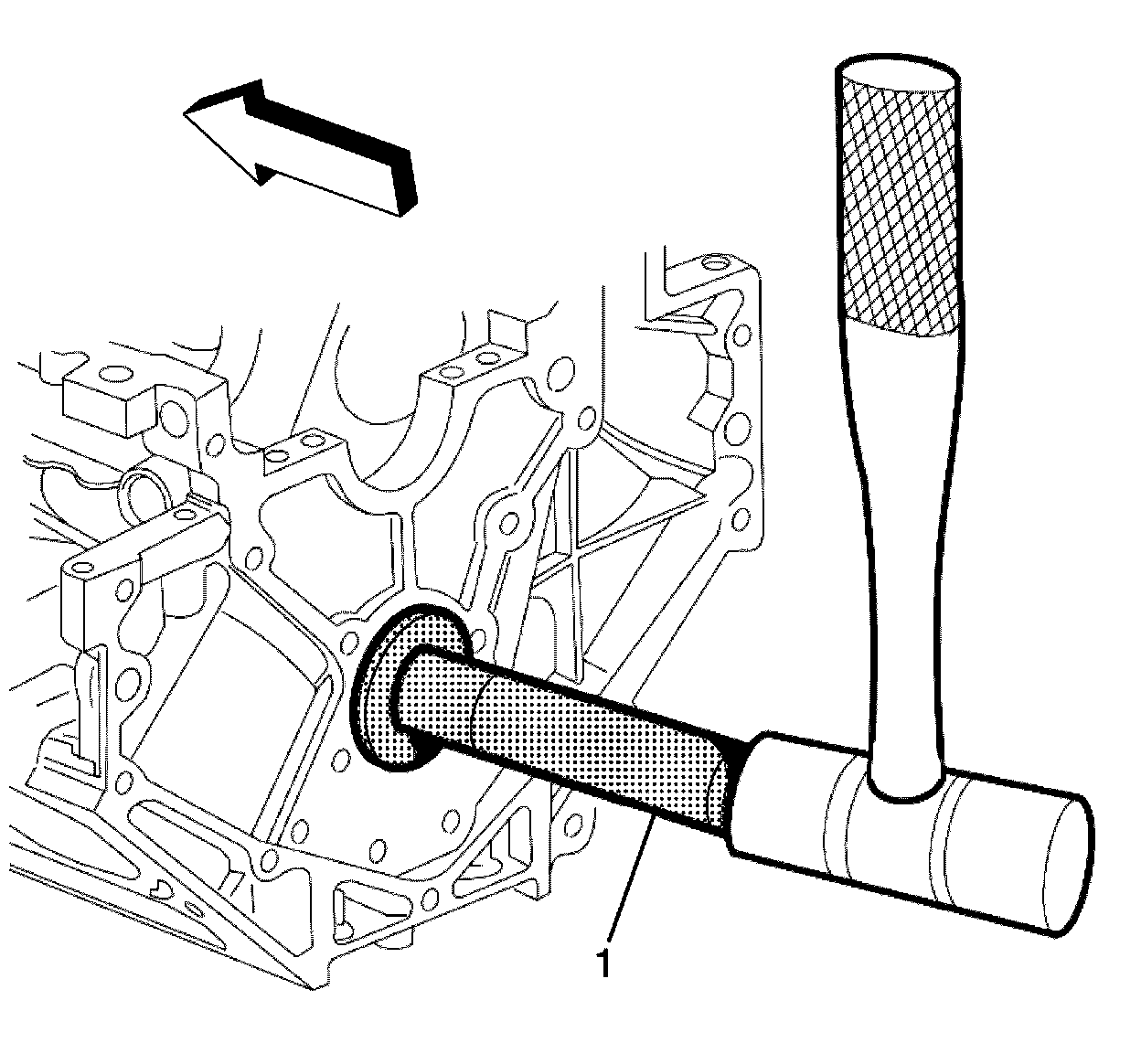 5. Insert the tool through the front of the engine block and into the bearing.