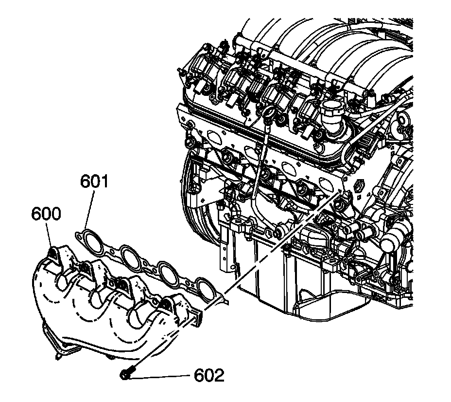 2. Remove the exhaust manifold (600), bolts (602), and gasket (601).