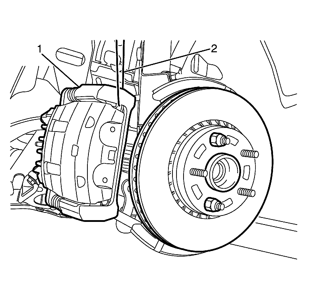 71. Remove the heavy mechanic's wire, or equivalent support (2) from the brake caliper (1). Repeat for opposite side.