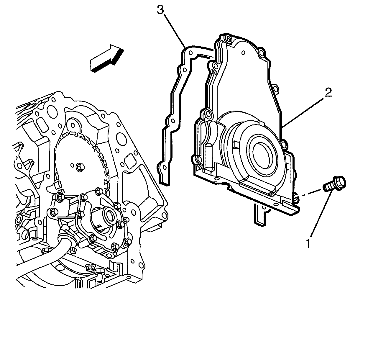 5. Remove the engine front cover gasket (3).