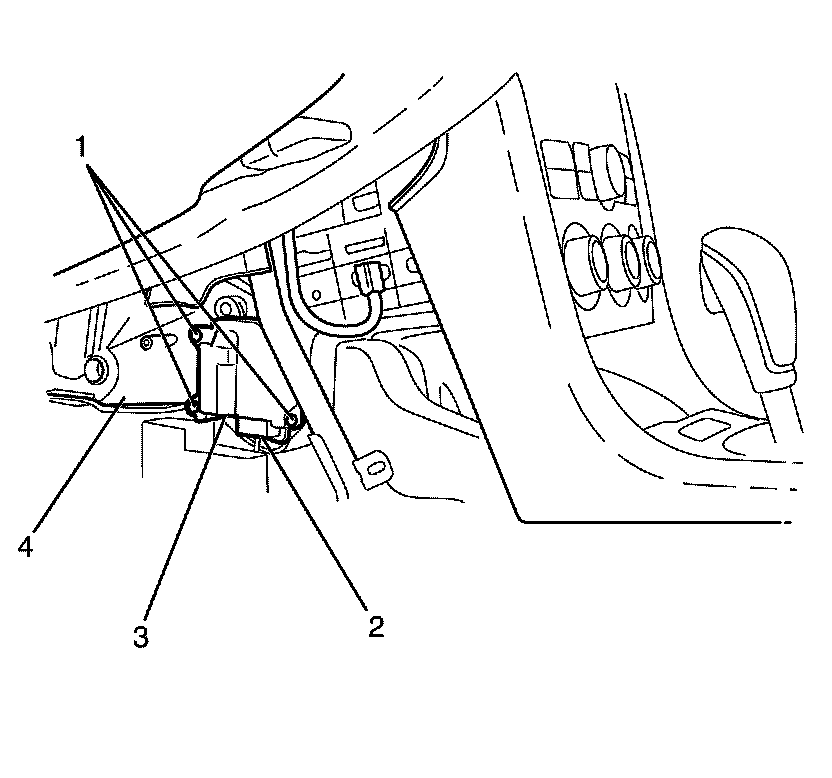 1. Remove the knee bolster. Refer to Knee Bolster Replacement (Service and Repair).