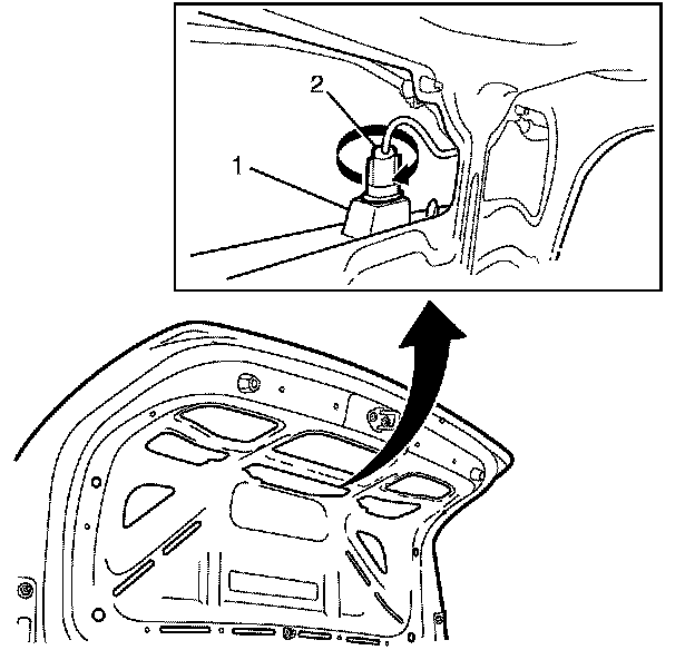 Important: Rotate the license plate lamp bulb socket (2) counter-clockwise to remove.