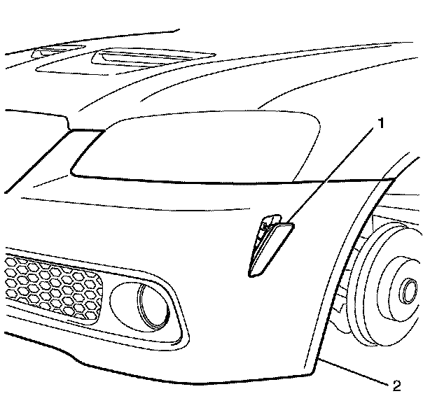 2. Install the front side marker lamp assembly (1) to the front fascia (2).