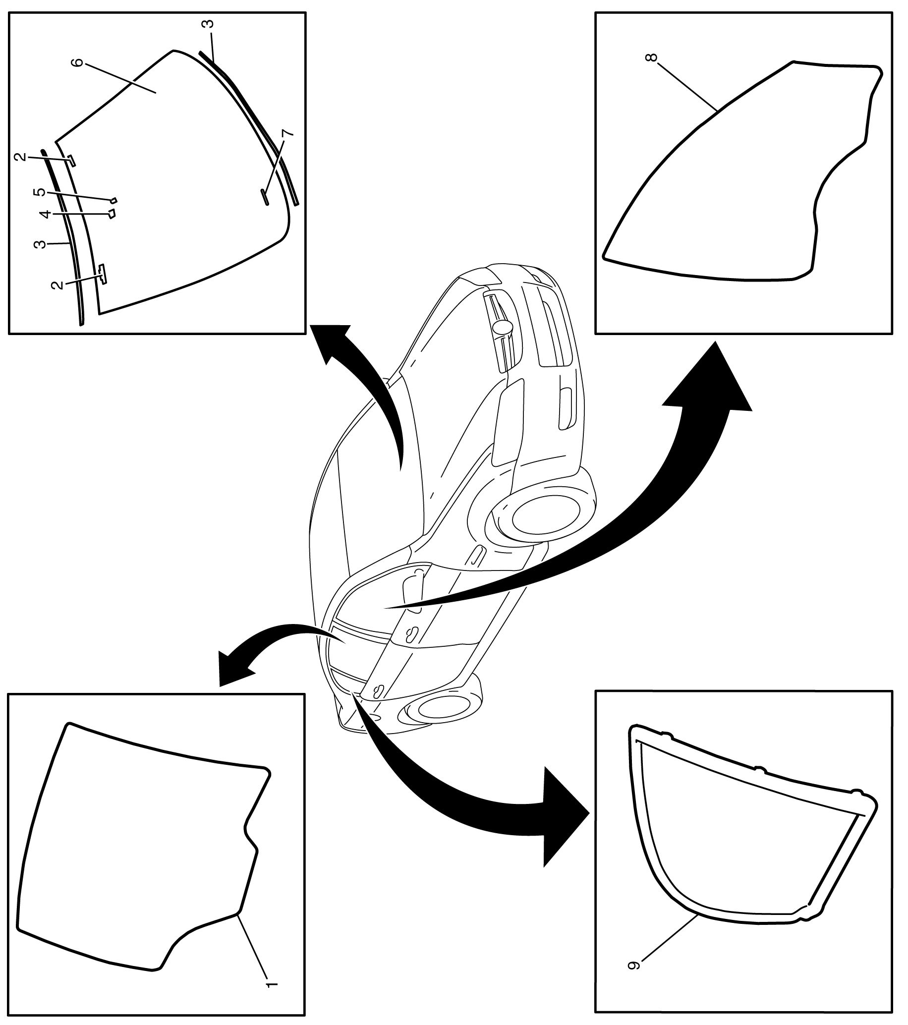 Windshield and Body Side Glass Component Views