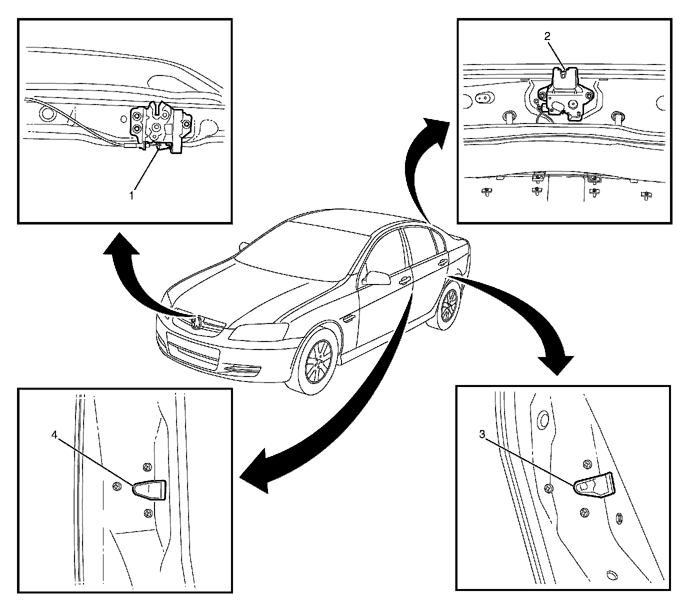 Hood Latch Assembly, Trunk Latch Assembly, Front