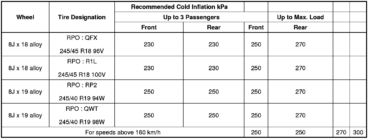 Inflation Pressure Specifications