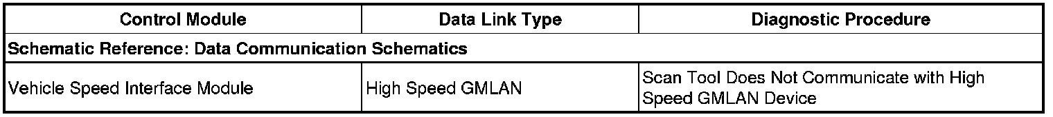 This table identifies which serial data link that a particular module uses for in-vehicle data transmission. Some modules may use more than one data link to communicate. Some modules may have multiple communication circuits passing through them without actively communicating on that data link. This table is used to assist in correcting a communication malfunction. For the description and operation of these serial data communication circuits refer to Data Link Communications Description and Operation (Description and Operation).