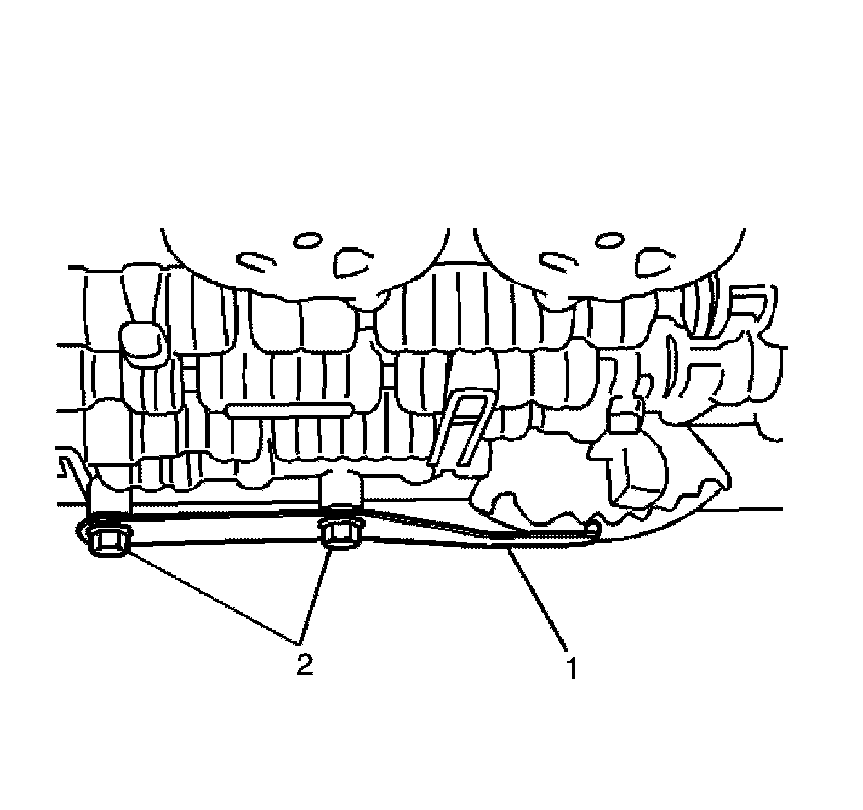 10. Install bolt till stepped shank (1) is 2 mm below chassis rail flange (2).