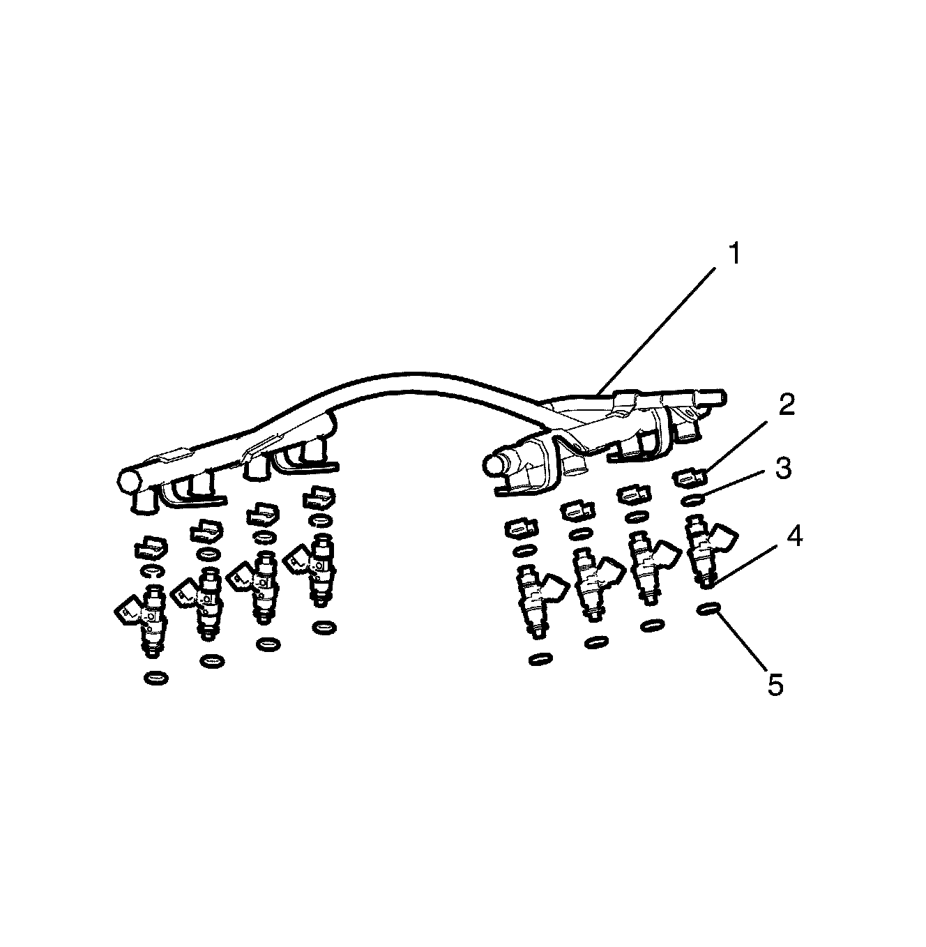 3. Install the NEW injector lower O-ring seals (5) to the injectors.