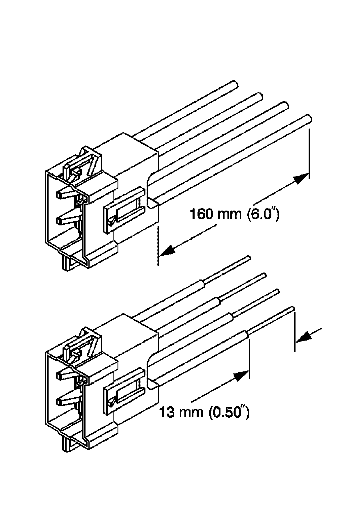 125. Strip 13 mm (0.5 in) of insulation from each of the connector wire leads.