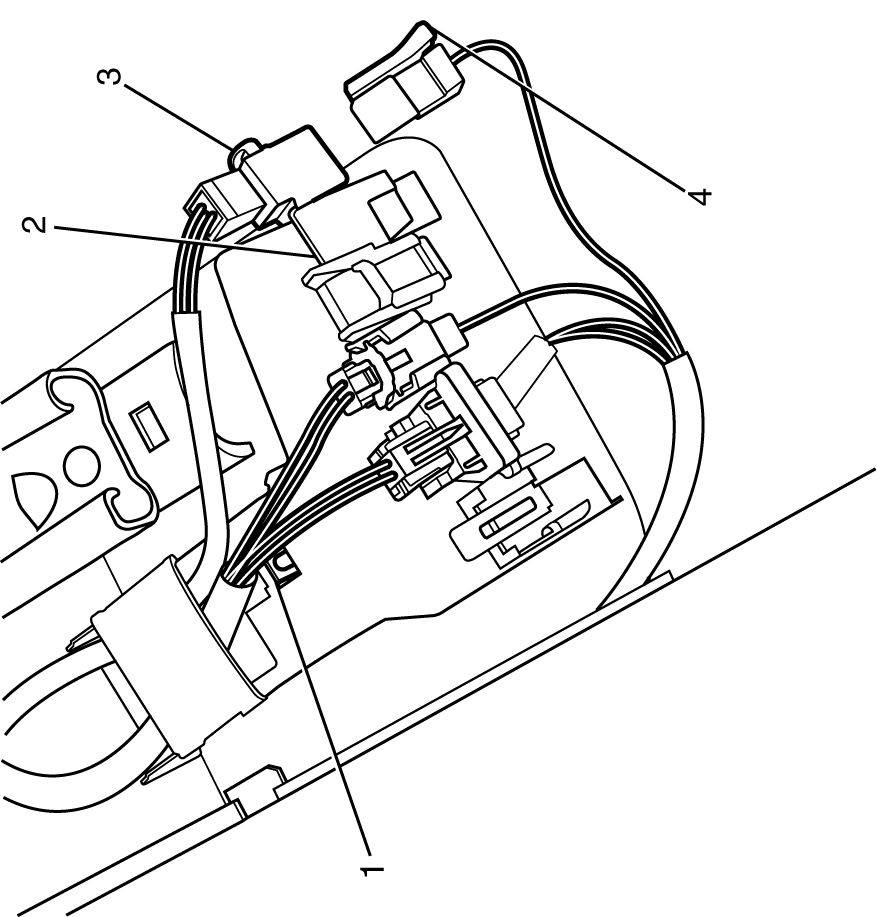 112. Cut the harness connector leading to the harness connector (4) from the vehicle, leaving at least 16 cm (6 in) of wire at the connector.