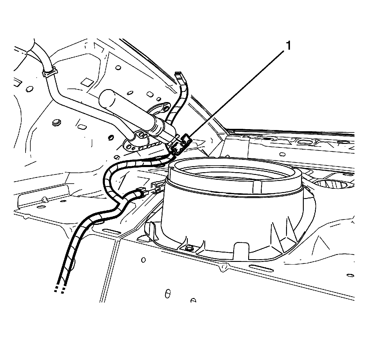93. Detach the connector housing assembly (1) from the floor panel.