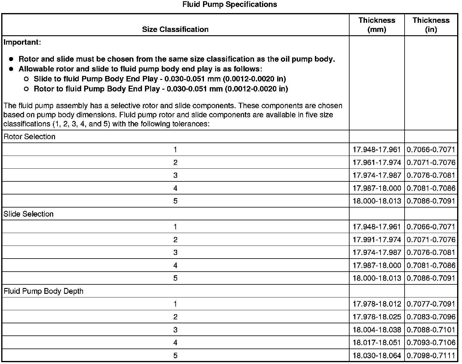 Transmission Fluid Pump Specifications