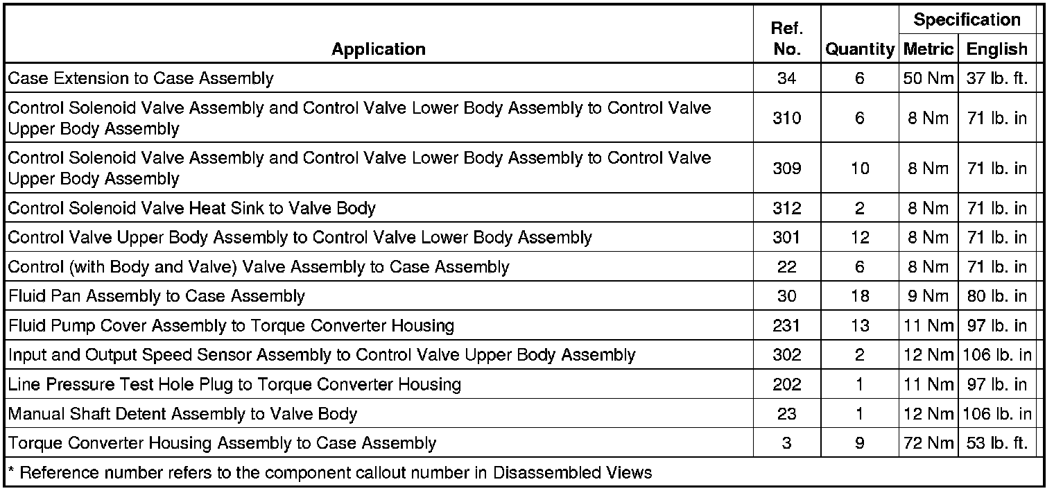 Flex Plate to crankshaft bolts - Second pass 50 Nm (37 lb ft)