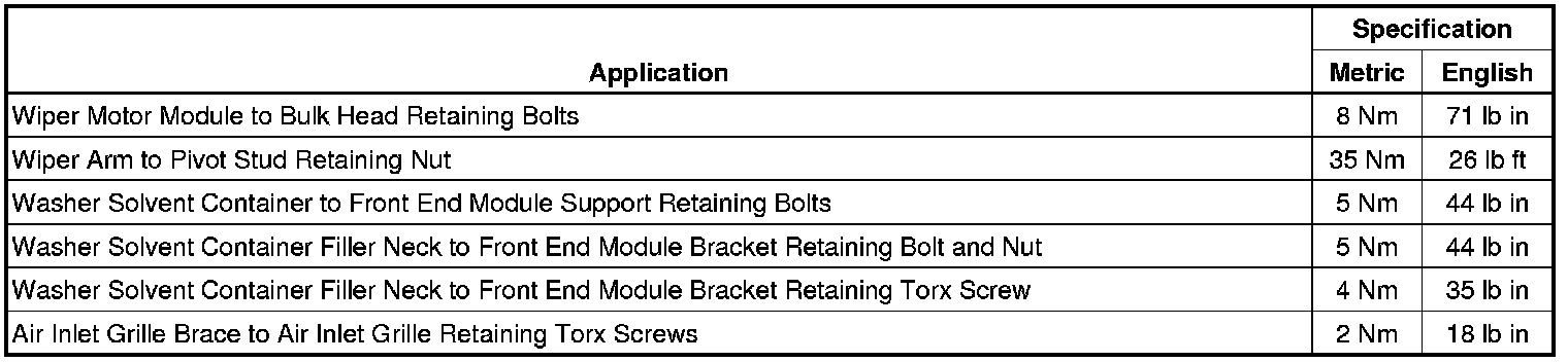 Fastener Tightening Specifications