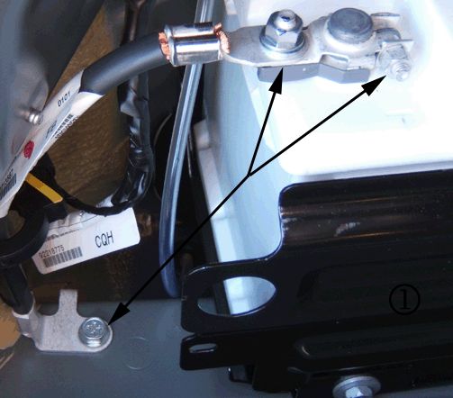 2. Inspect for a loose or poor positive (B+) battery cable connection where the cable connects to the battery or to the floor of the trunk.