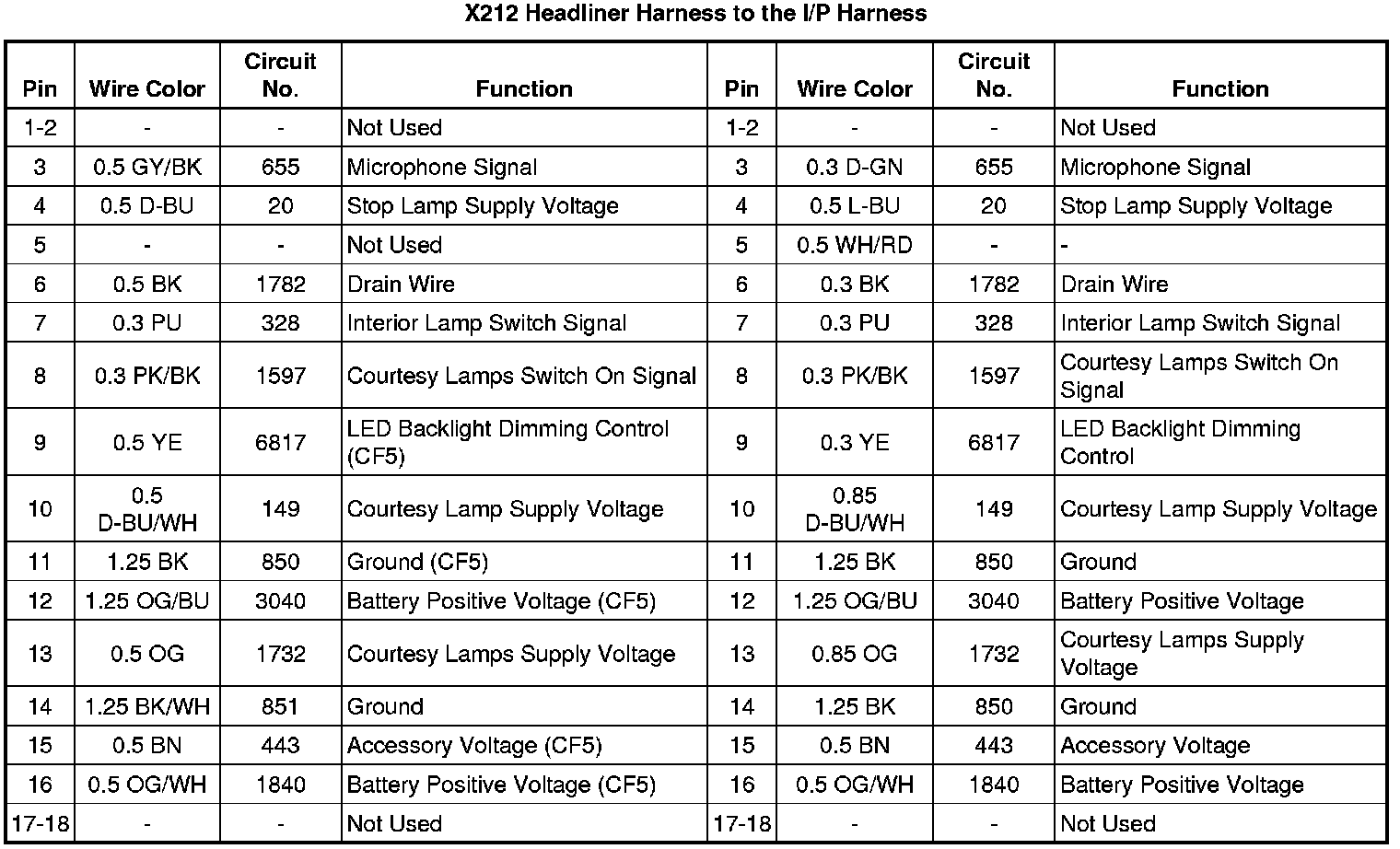 X212 Headliner Harness to the I/P Harness