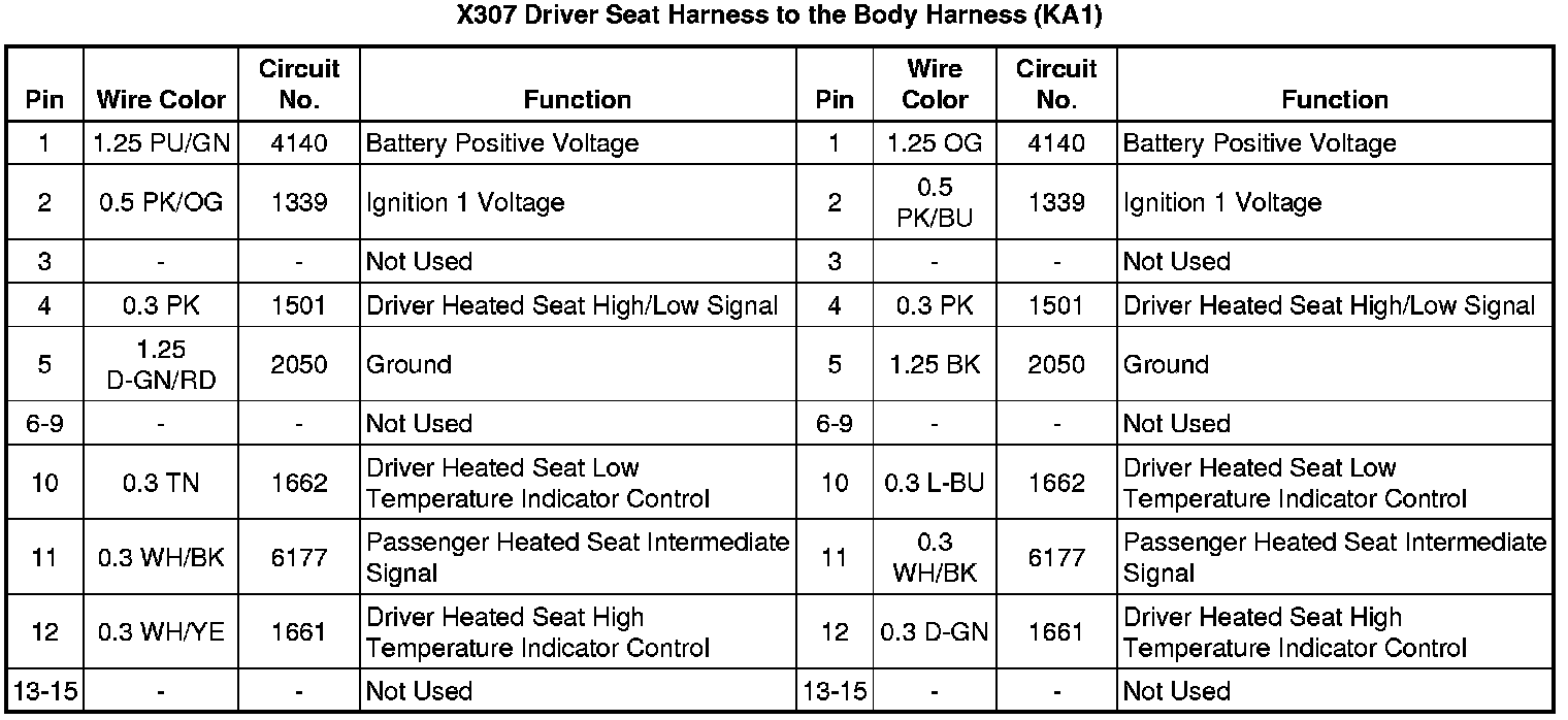 X307 Driver Seat Harness to the Body Harness (KA1)