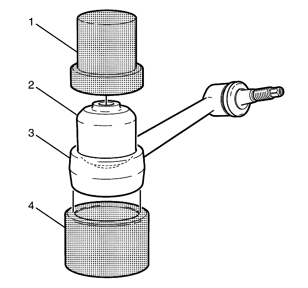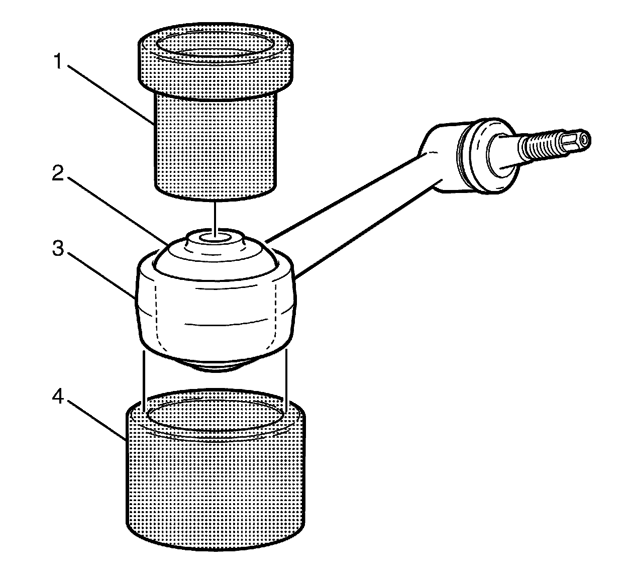 1. Using the KM-619 (1) and CH-48510 (4), install the NEW bushing (2) to the front control arm (3).