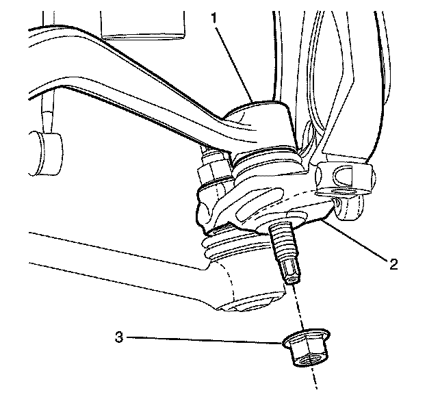 5. Remove and discard the caster arm to steering knuckle retaining nut (3).