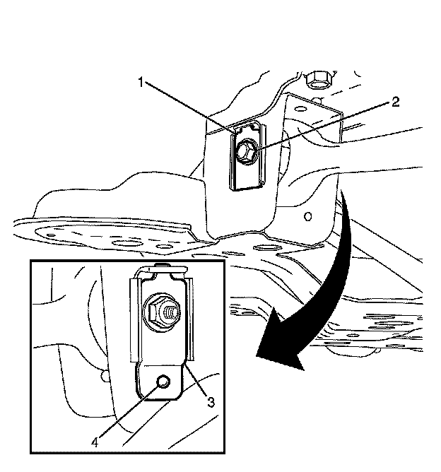3. Install the end plate with encapsulated retaining nut to subframe retainer (4).