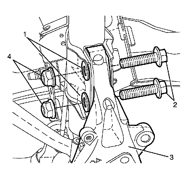 18. Remove and discard the strut assembly to steering knuckle retaining bolts (2), nuts (4) and washers (1).