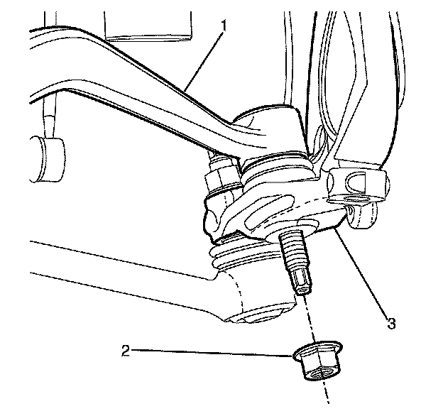 12. Remove and discard the caster arm to steering knuckle retaining nut (3).