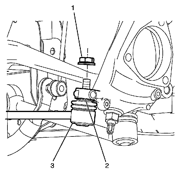 9. Install the driver side tie rod end (3) to the steering knuckle (2).