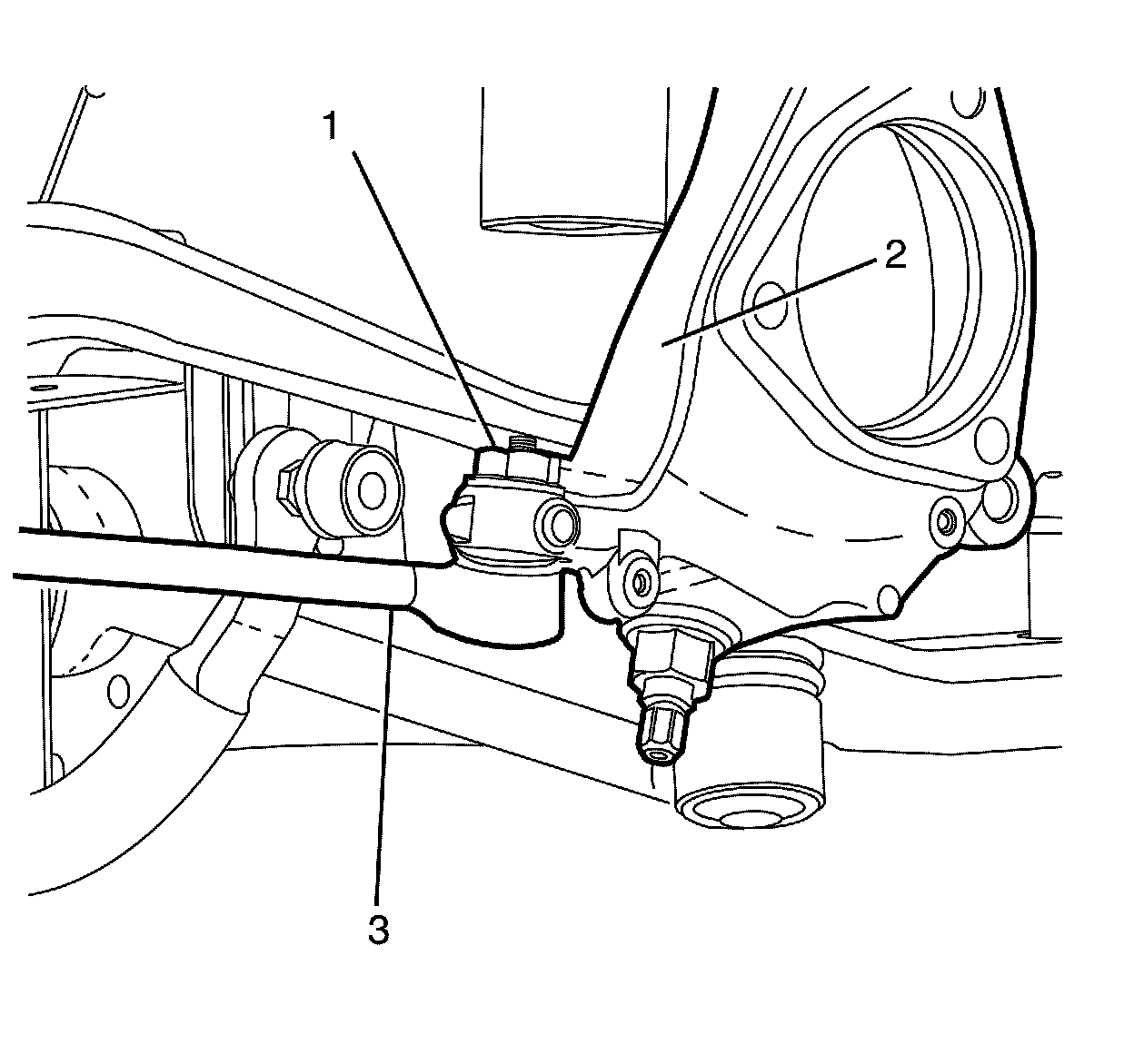 4. Disconnect the stabilizer bar link (2) from the stabilizer bar (3).