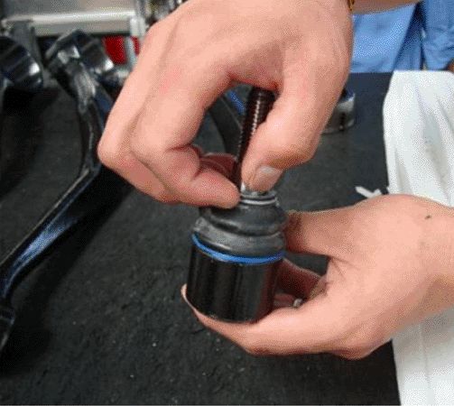 1. Assemble the sealing boot and small ring assembly over the ball stud.