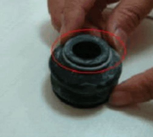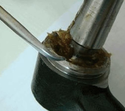 8. Using a clean, flat-bladed screwdriver or similar tool, scoop any grease from inside the removed boot and apply it to the open end of the ball joint housing.