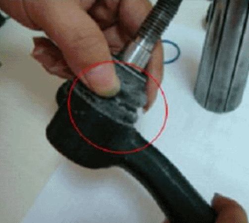 4. Check the taper and thread of the ball stud and ball joint for any damage. No damage on the control arm is allowed. If a thread is scratched or there is any noticeable damage caused to the tapers as a result of disassembly, the control arm should be replaced.