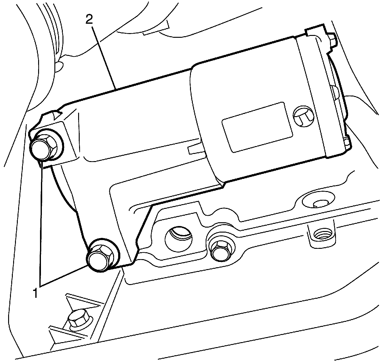 15. Install the starter motor (2). Refer to Starter Replacement (3.6L) ()Starter Replacement (6.0L) ().